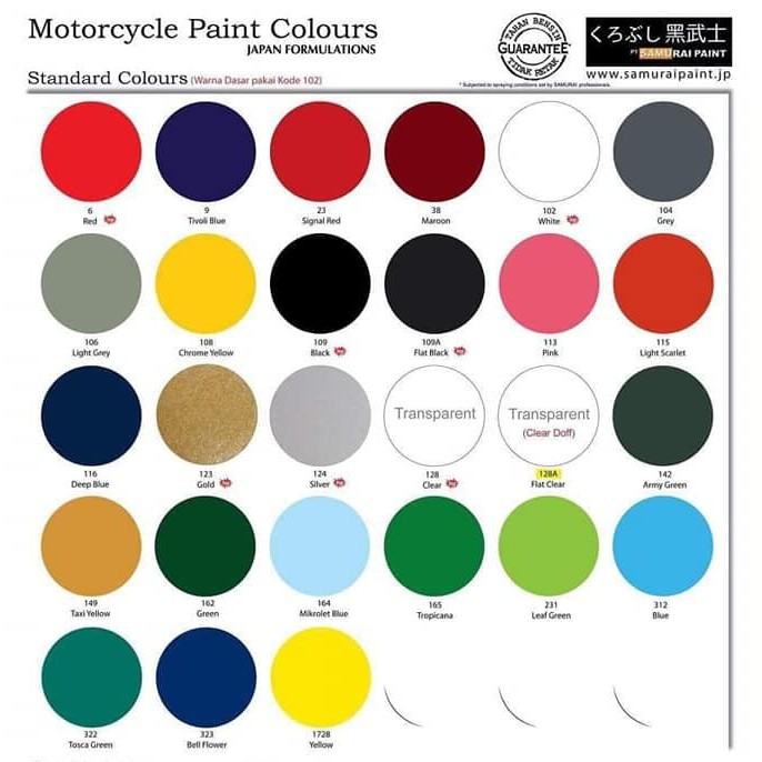Samurai Paint selaku perusahaan berani menjamin jika produk yang dijualnya bisa memberikan warna berkualitas bagus diantaranya tahan terhadap paparan bensin dan tak akan. 205 92 92 Koral terang. Adapun cara penggunaan Cat Semprot Samurai 2K adalah.